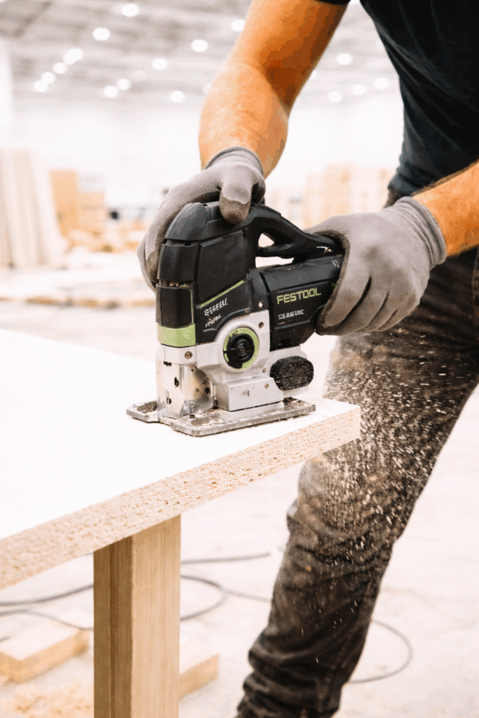 • Schreinerarbeiten: Maßgefertigte Einbauten, Regale, Theken und Raumkonzepte direkt vor Ort montiert.